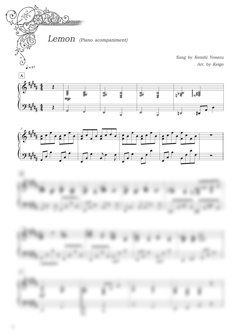 米津玄師『Lemon』ピアノ伴奏【原曲キー】/ Kenshi Yonezu "Lemon" Piano Accompaniment