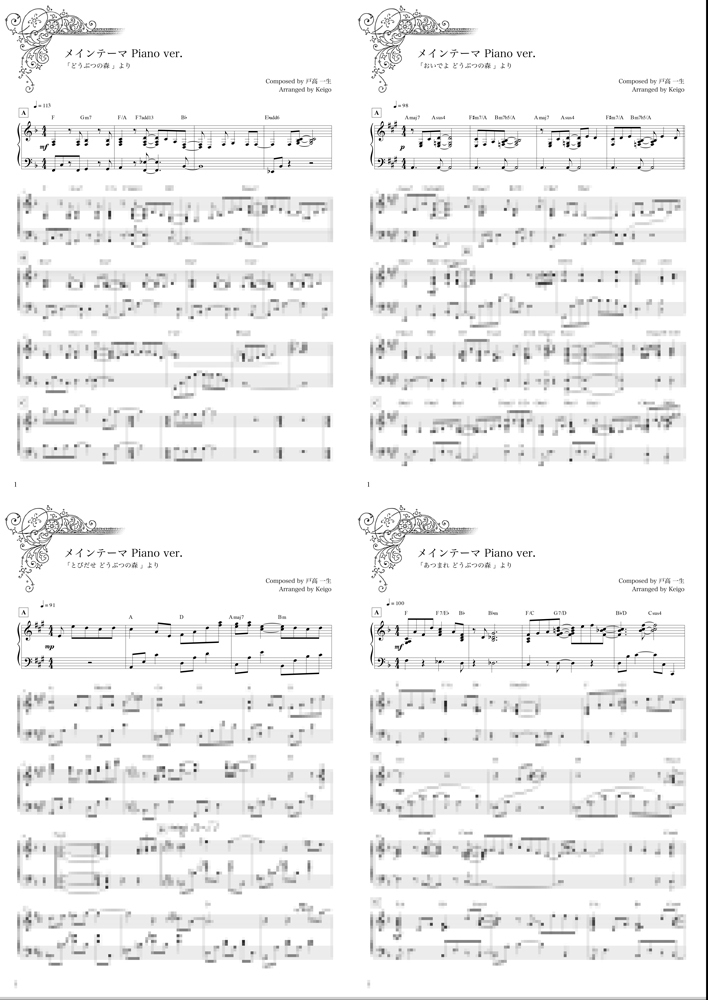 歴代どうぶつの森「メインテーマ」楽譜 ピアノソロ【4作品セット】 / Animal Crossing Series "Main Theme" Piano Solo